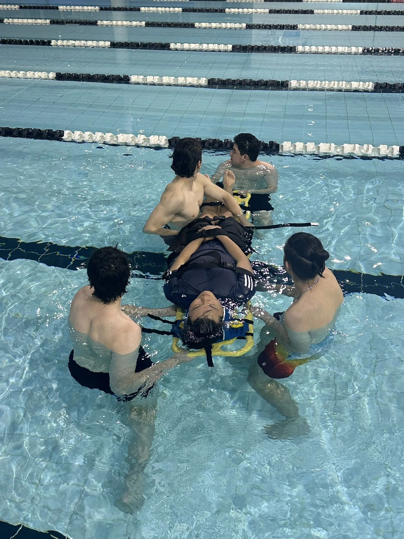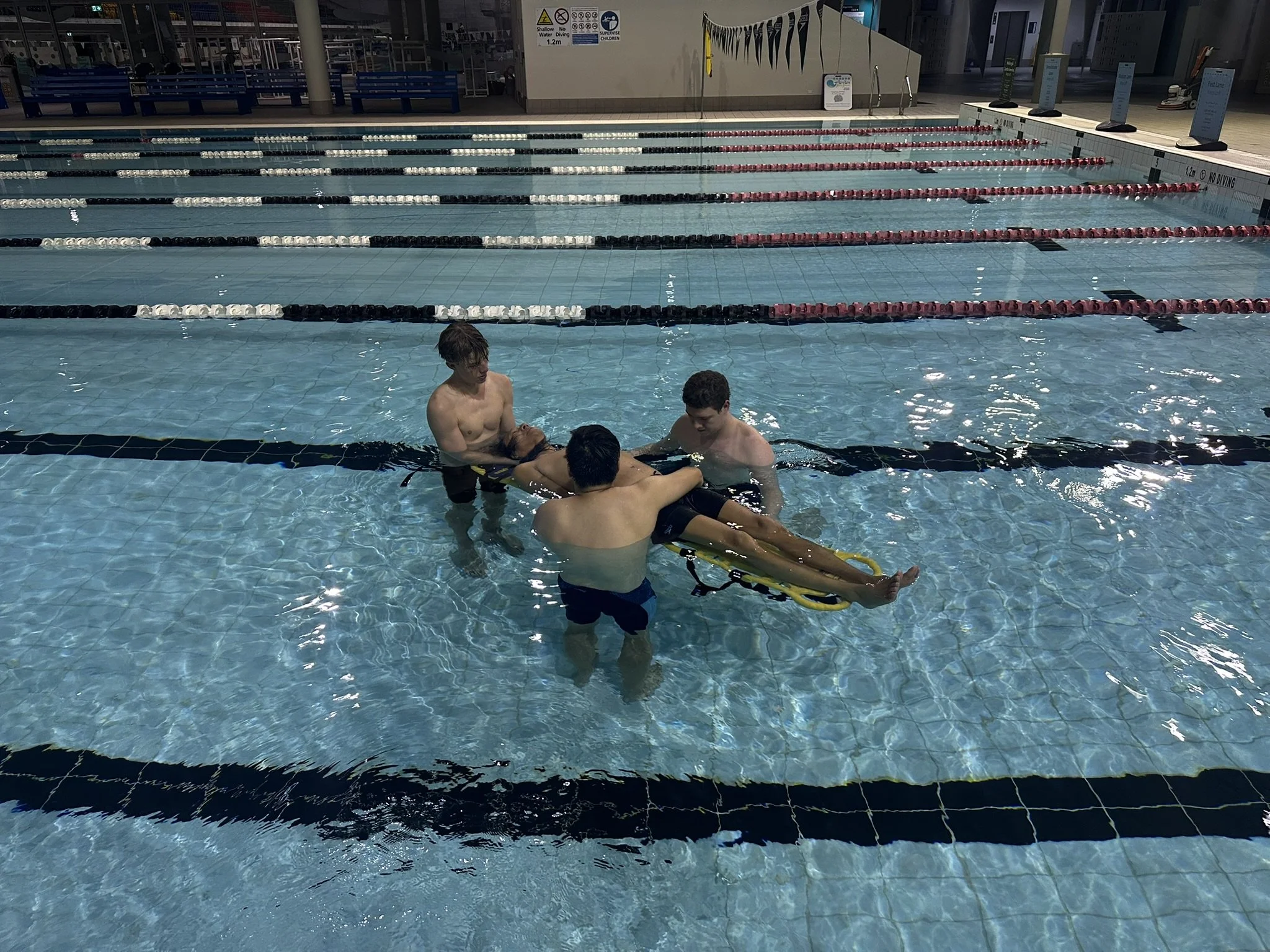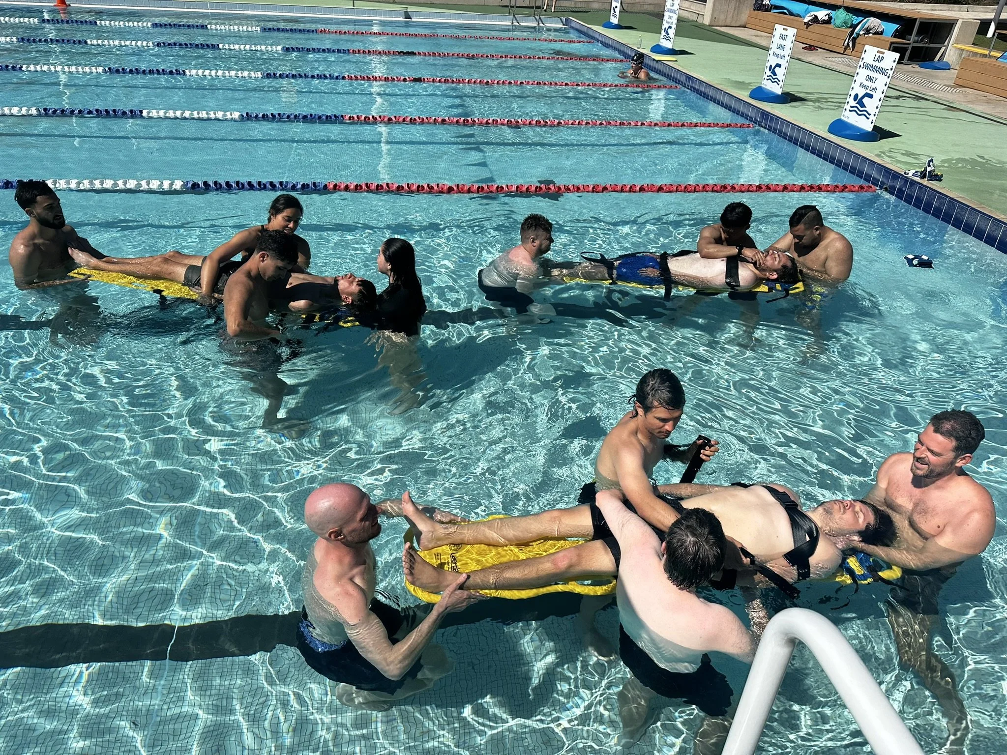 Swim 25 metres and perform a 25 metre non-contact tow of a casualty. Working as a team, extract a casualty from deep water using extraction equipment and demonstrate advanced resuscitation techniques